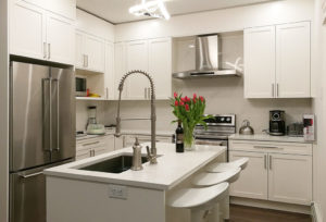 We also offer painted MDF, acrylic, and Tafisa® decorative panels for kitchens, and slab doors made of HPL (high-pressure laminate) or recycled panels. These materials are recommended for vanities, laundry rooms and mudrooms. We will work with you to make you the best custom kitchen possible within the budget you’ve got – and we’ll be on time.