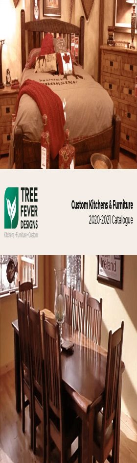 Examples of Tree Fever Designs’ custom furniture can be found at Sims Fine Furniture in Red Deer, Island Home in Nanaimo Campbell River, Jowsey’s in Port Alberni, Rogers Furniture in Duncan, and McLeary’s in Langley.